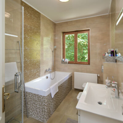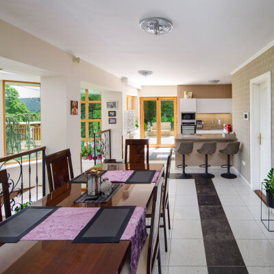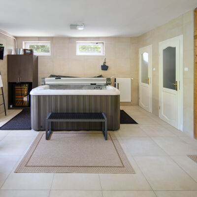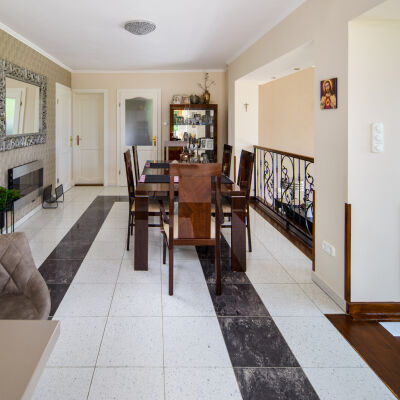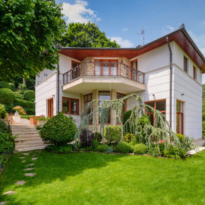 A detached villa for sale in Máriaremete, District II, at the end of the forest. The property has many special features, a Victorian marble fireplace, bathrooms with villeroy and boch products, a wellness area with a 6-person jacuzzi and a Finnish sauna, and a comfortable garage for 3 cars.
