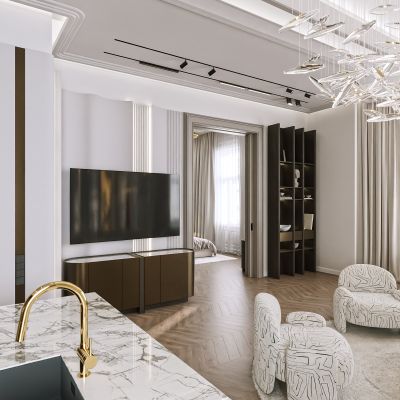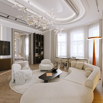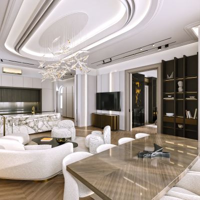 This property is designed to the highest standards, combining modern comfort with timeless elegance. The visualizations shown are design renderings; the apartment will be completed by December 2025.