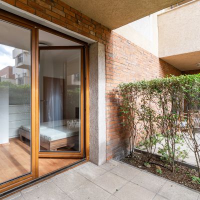 The terraces overlook the building’s inner garden, providing residents with a private green area – an ideal setting for a morning coffee or an afternoon of relaxation.