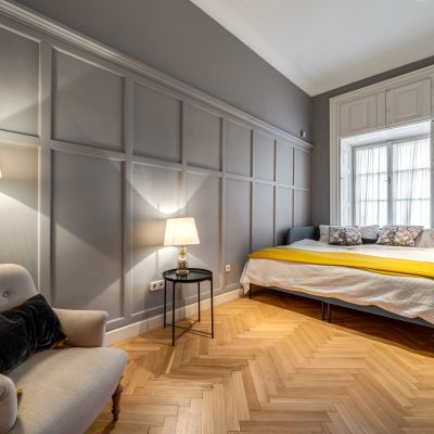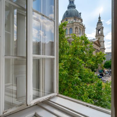 In the very heart of Budapest, just steps away from St. Stephen’s Basilica, this sophisticated apartment combines historic grandeur with modern comfort.