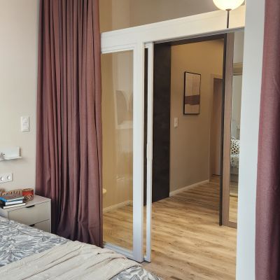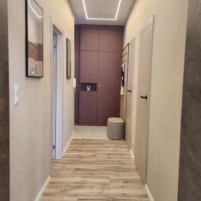 For sale: a fully renovated, 3-room apartment (2 bedrooms + open-plan kitchen and living room), located on the 1st floor of a well-maintained building with an elevator.