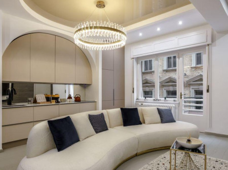 This stunning 77 sqm luxury apartment is located in Budapest’s 5th District, just steps from Fővám tér and the Danube.