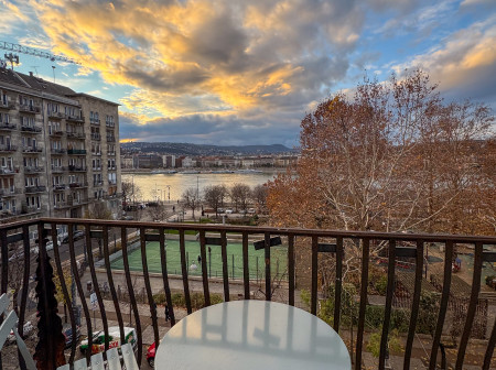 The apartment offers one of Budapest’s most exceptional panoramas, with sweeping, uninterrupted views of the Danube, the Parliament and the Buda Hills extending all the way to Margaret Bridge. This remarkable outlook can be enjoyed both from the elegant living area and from the private balcony, creating a truly rare setting in the heart of the city.