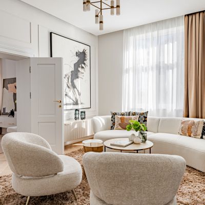 High ceilings, abundant natural light, and thoughtfully curated interior design give the apartment a truly elevated feel. Every element was selected with care: high-quality finishes, bespoke lighting solutions and state-of-the-art appliances ensure outstanding everyday comfort.