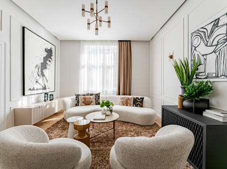 High ceilings, abundant natural light, and thoughtfully curated interior design give the apartment a truly elevated feel. Every element was selected with care: high-quality finishes, bespoke lighting solutions and state-of-the-art appliances ensure outstanding everyday comfort.