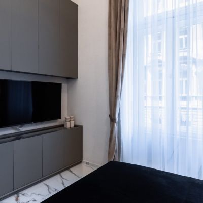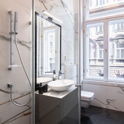 This fully renovated apartment is located on Szent István Boulevard, in the immediate vicinity of the Vígszínház Theatre and just a few minutes’ walk from Nyugati Railway Station.