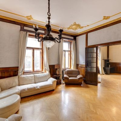 From the moment you step inside, the property exudes a sense of historic grandeur. Original features from the late 19th century have been remarkably well preserved, including ornate stucco detailing, handcrafted wooden wall panelling, original doors and windows, and elegant chandeliers that recall the grace and sophistication of a bygone era. A comprehensive renovation was completed in 2009, during which all essential systems—electrical wiring, water and gas pipes—were fully upgraded, and new radiators installed, ensuring modern comfort while respecting the apartment’s classical character. The property offers a generous internal area of 145 square metres and is further enhanced by a rare 3 square metre balcony overlooking Wesselényi utca, the only one of its kind within this classical building.
