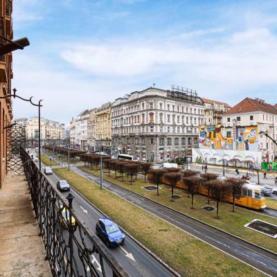 Located on Károly Boulevard, right by Deák Square, in one of Budapest’s most prestigious central locations, we offer this 100 sqm, premium-quality renovated apartment for sale. Its layout features a spacious open-plan living room with kitchen, two bedrooms, a separate walk-in wardrobe, an exclusive bathroom, and a large balcony with panoramic city views. The property has undergone a full technical and aesthetic renovation in the past two years, using high-end materials and custom-designed built-in furniture.