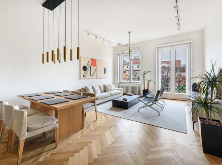 Located on Károly Boulevard, right by Deák Square, in one of Budapest’s most prestigious central locations, we offer this 100 sqm, premium-quality renovated apartment for sale. Its layout features a spacious open-plan living room with kitchen, two bedrooms, a separate walk-in wardrobe, an exclusive bathroom, and a large balcony with panoramic city views. The property has undergone a full technical and aesthetic renovation in the past two years, using high-end materials and custom-designed built-in furniture.