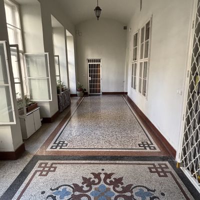 Positioned on the first floor of a well-maintained building, the apartment benefits from extraordinary ceiling heights of 4.7 meters—creating a sense of elevation that feels closer to a second-floor residence. The impressive proportions continue throughout, delivering both space and elegance in every room.