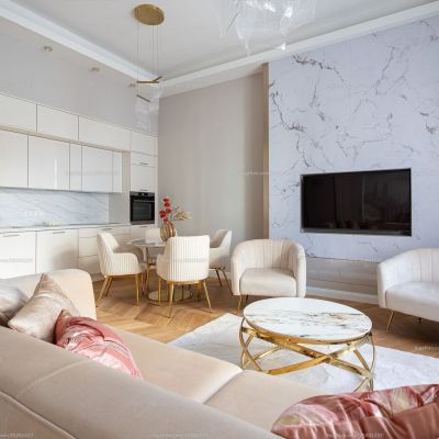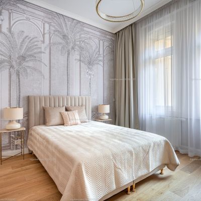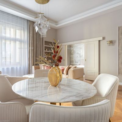 The apartment has been comprehensively refurbished to an exceptional standard, with premium materials throughout. The principal bedroom and reception room overlook the quiet Nyáry Pál Street, whilst the second bedroom faces a tranquil interior courtyard. The principal bathroom features a freestanding bath, WC, and bidet; the second is fitted with a contemporary shower enclosure.