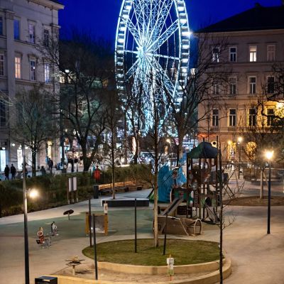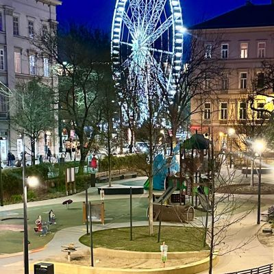 Positioned directly on Hild Square, this exceptional 106 square metre apartment offers rare, unobstructed views over the square and the Budapest Ferris wheel, uniting iconic city scenery with refined interior design. Set within a distinguished late 19th-century classical building, the property has been comprehensively renovated to an exacting standard, thoughtfully balancing historic character with the demands of contemporary living.
