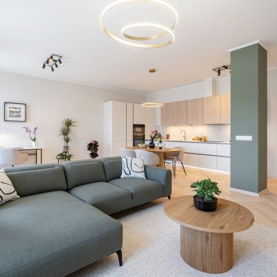 The property is situated on the 5th floor of a well-maintained residential building with a good community, and benefits from bright, street-facing interiors. The centerpiece of the apartment is the spacious, sun-filled living room, which is seamlessly connected to the kitchen, creating an ideal space for both everyday living and entertaining.